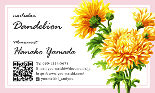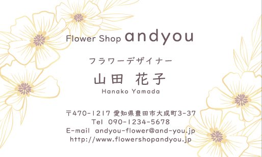 花・花柄名刺〜花の写真・手描きのイラスト・様々な花のモチーフを使ってデザインした名刺〜 (679件中:16〜30件目)
