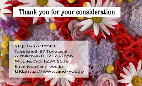 名刺を渡す相手にも、名刺に描かれた花でホッとするような瞬間を作ってはどうでしょうか。
