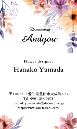 花・花柄名刺〜花の写真・手描きのイラスト・様々な花のモチーフを使ってデザインした名刺〜 (679件中:61〜75件目)