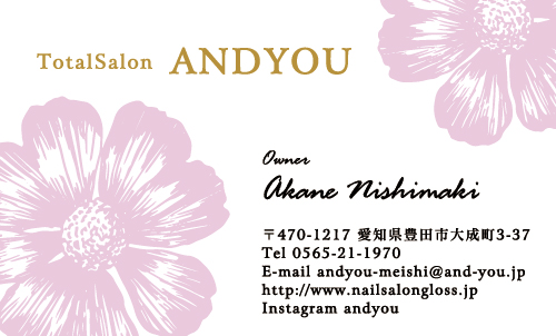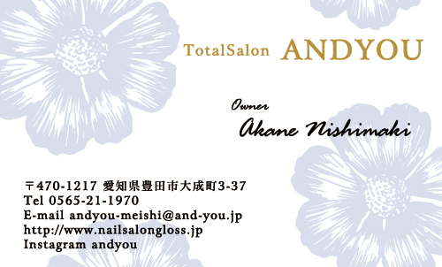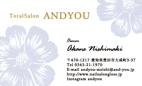 花・花柄名刺〜花の写真・手描きのイラスト・様々な花のモチーフを使ってデザインした名刺〜 (679件中:106〜120件目)
