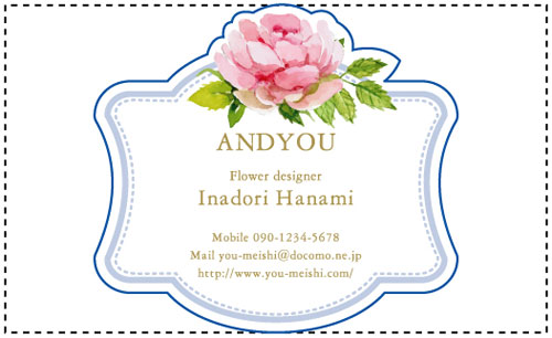 ※通常の名刺サイズ91mm×55mmを点線で表しておりますので、切りぬき後のサイズの目安としてご覧ください。