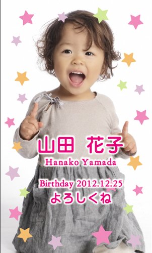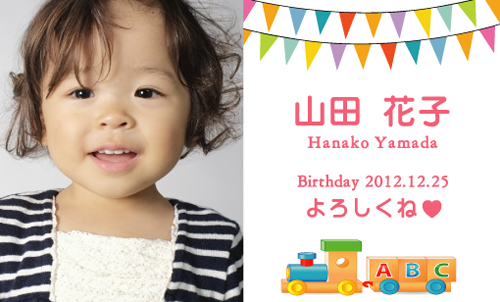 ベビー誕生の報告や内祝いギフトに添えるカードに使える写真入りデザインカード! |