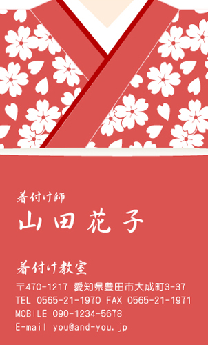 呉服屋さん・着物屋さん、着付け教室専用の名刺