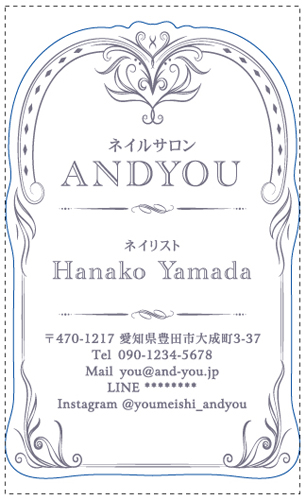 ※通常の名刺サイズ91mm×55mmを点線で表しておりますので、切りぬき後のサイズの目安としてご覧ください。