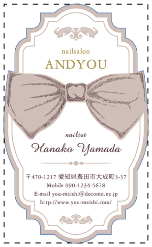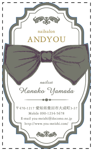 ※通常の名刺サイズ91mm×55mmを点線で表しておりますので、切りぬき後のサイズの目安としてご覧ください。