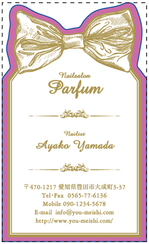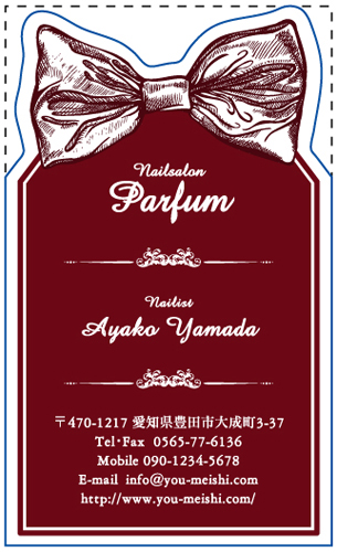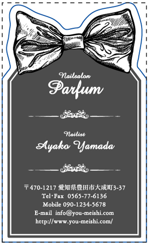 名刺の一部分を好きな形に切り抜いたり、名刺そのものの形を切り抜く事ができます。会社のロゴを切り抜いたり、ハート・星・動物・クラウン・花・果物・リボンの形の名刺…etc とデザインは無限大!