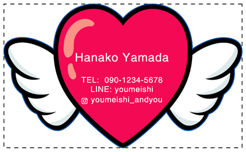 名刺の一部分を好きな形に切り抜いたり、名刺そのものの形を切り抜く事ができます。会社のロゴを切り抜いたり、ハート・星・動物・クラウン・花・果物・リボンの形の名刺…etc とデザインは無限大!