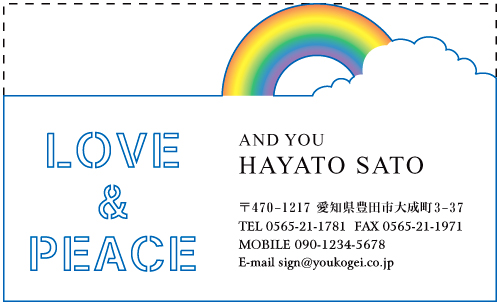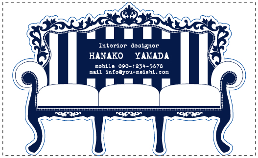 名刺の一部分を好きな形に切り抜いたり、名刺そのものの形を切り抜く事ができます。会社のロゴを切り抜いたり、ハート・星・動物・クラウン・花・果物・リボンの形の名刺…etc とデザインは無限大!