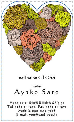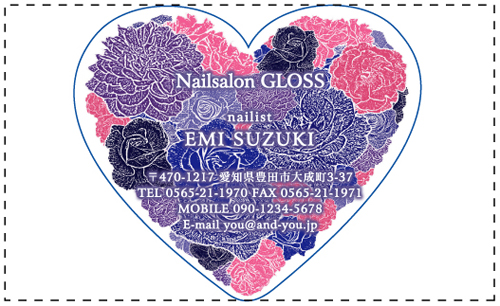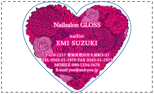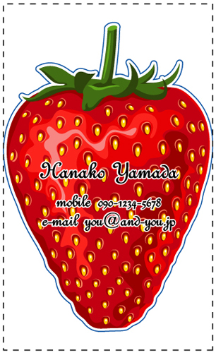 名刺の一部分を好きな形に切り抜いたり、名刺そのものの形を切り抜く事ができます。会社のロゴを切り抜いたり、ハート・星・動物・クラウン・花・果物・リボンの形の名刺…etc とデザインは無限大!