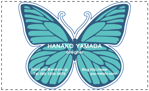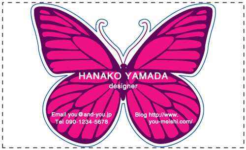 名刺の一部分を好きな形に切り抜いたり、名刺そのものの形を切り抜く事ができます。会社のロゴを切り抜いたり、ハート・星・動物・クラウン・花・果物・リボンの形の名刺…etc とデザインは無限大!