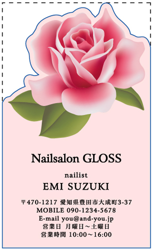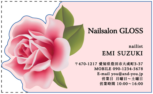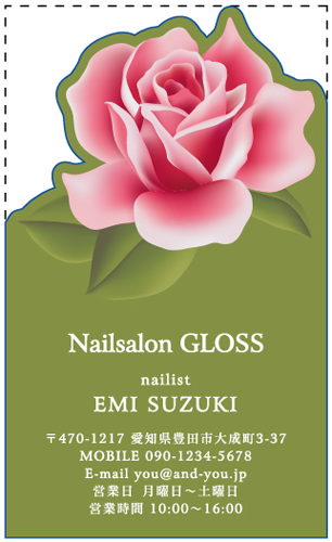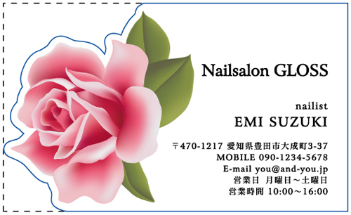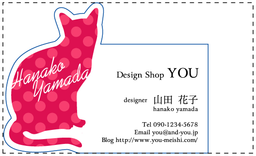 名刺の一部分を好きな形に切り抜いたり、名刺そのものの形を切り抜く事ができます。会社のロゴを切り抜いたり、ハート・星・動物・クラウン・花・果物・リボンの形の名刺…etc とデザインは無限大!