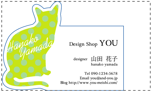 ※通常の名刺サイズ91mm×55mmを点線で表しておりますので、切りぬき後のサイズの目安としてご覧ください。