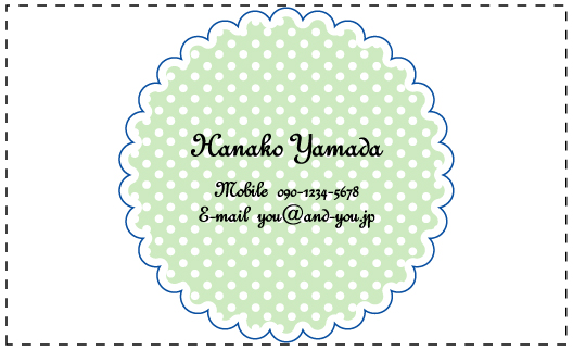 ※通常の名刺サイズ91mm×55mmを点線で表しておりますので、切りぬき後のサイズの目安としてご覧ください。