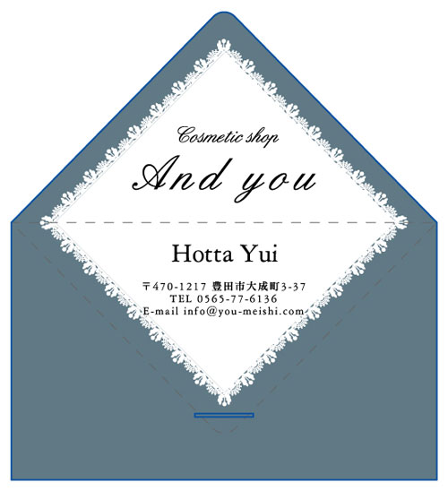 ふたを閉じるとミニレターのような形に変身しちゃう二つ折り名刺です♪