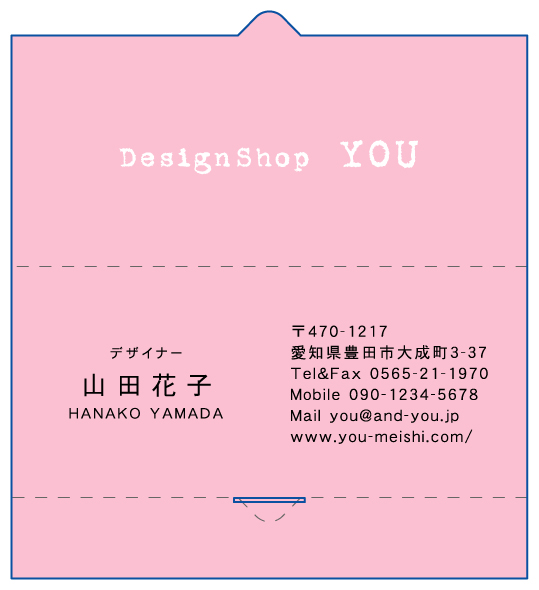ふたを閉じるとミニレターのような形に変身しちゃう二つ折り名刺です♪