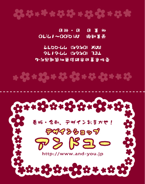 20枚からご注文できる、2つ折りサイズのショップカード・ポイントカードです。