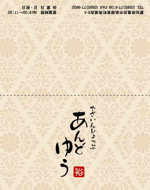 ※背景に色がついているデザインの場合、折り目の部分から色が剥げ、白い色(用紙の色)が出てきてしまう恐れがあります。予めご了承ください。