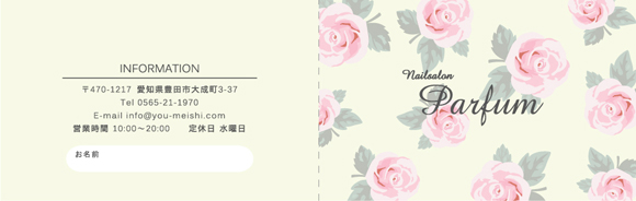20枚からご注文できる、2つ折りサイズのショップカード・ポイントカードです。