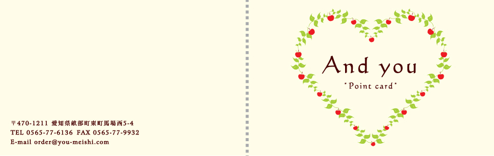 20枚からご注文できる、2つ折りサイズのショップカード・ポイントカードです。