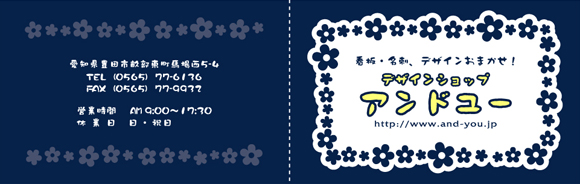 20枚からご注文できる、2つ折りサイズのショップカード・ポイントカードです。