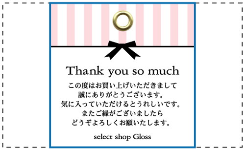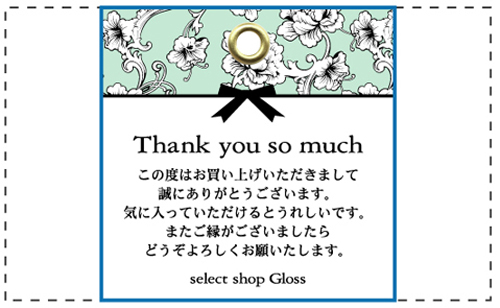 記載内容は自由ですので、サンキュータグに入れたい内容をご注文フォームにご記入下さい。