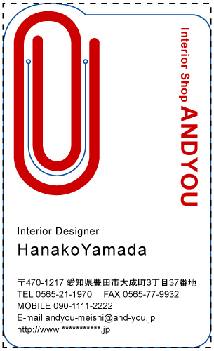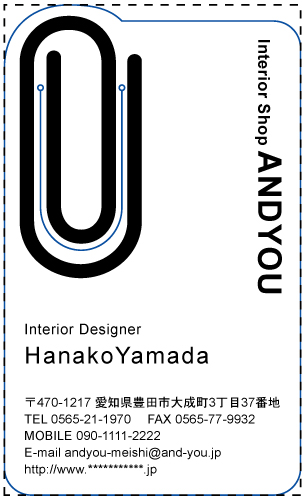 ※通常の名刺サイズ91mm×55mmを点線で示しておりますので、サイズの目安としてご覧ください。