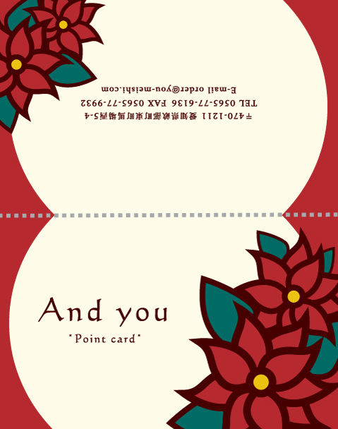 20枚からご注文できる、2つ折りサイズのショップカード・ポイントカードです。
