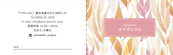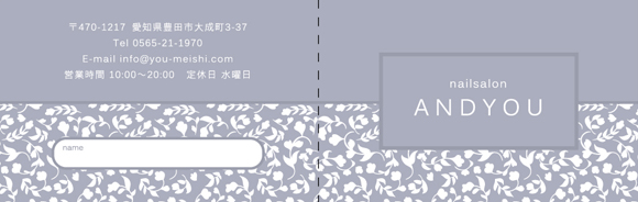 20枚からご注文できる、2つ折りサイズのショップカード・ポイントカードです。
