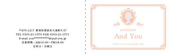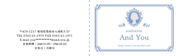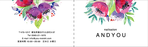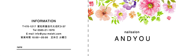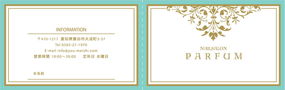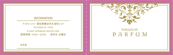 20枚からご注文できる、2つ折りサイズのショップカード・ポイントカードです。