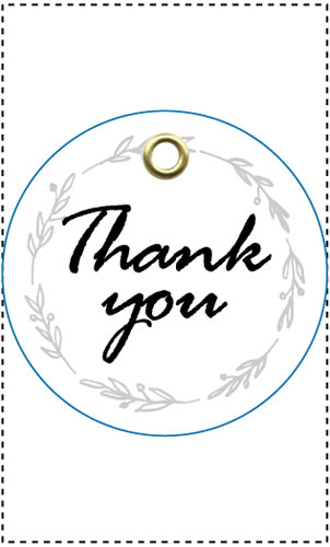 こちらのサンキュータグに通す紐・リボンは、お客様各自にてご用意ください。
