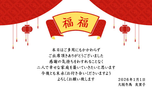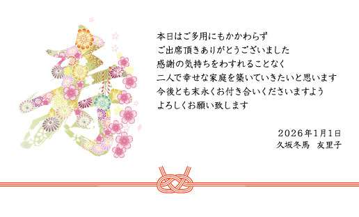 「寿」の文字や、紅梅、折鶴などのモチーフを使った和テイストのデザインや、